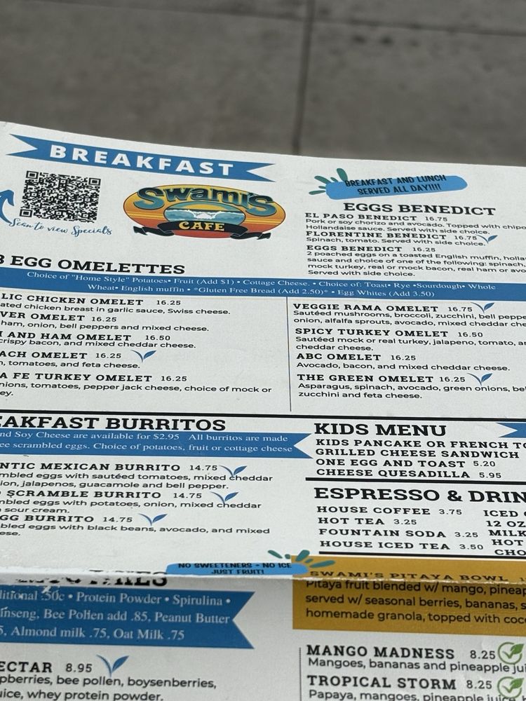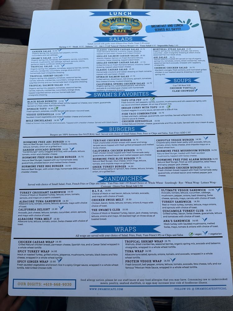 Swami's Cafe North Park Menu
